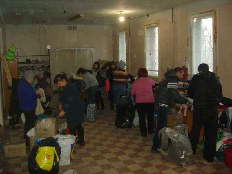 Гуманитарную помощь Фонд собирает, как собственными силами, так и с помощью организаций-партнеров. Кроме этого, сюда приносят вещи и продукты жители города.